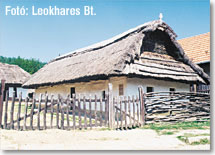 balra a Palóc házat. A fából és kőből épült zsúptetős tájház egy